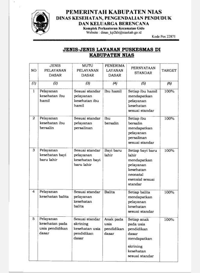 JENIS KENIS LAYANAN PUSKESMAS DI KAB. NIAS...